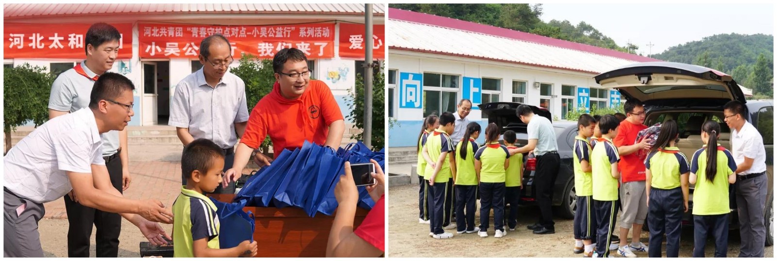 承德滦平县地处大山深处,为国家级贫困县,北大庙及周边村里的大部分成年人都外出打工,家里留下老人和孩子生活。很多孩子每天为了上学,要走一个多小时的山路来到学校,求学条件非常艰苦。之前在了解到北大庙小学的孩子们没有统一的校服,河北太和集团特地为北大庙小学的学生们采购了全新的校服,以及各种学习用品等。